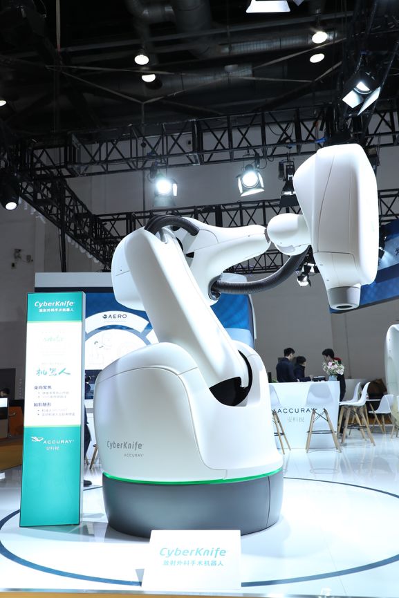 與此同時(shí),安科銳旗下的CyberKnife®射波刀放射外科手術(shù)機(jī)器人系統(tǒng)也在本屆CHINA MED上進(jìn)行了展示。作為目前世界上唯一的一款智能機(jī)器人放射治療設(shè)備,CyberKnife®射波刀適用于全身以及顱內(nèi)的放射外科治療,可以實(shí)時(shí)在放療過程中對腫瘤靶區(qū)進(jìn)行如影隨形的跟蹤和修正,治療精度達(dá)到亞毫米級(jí),在進(jìn)行高效治療的同時(shí),也能保護(hù)好正常的組織,為腫瘤患者提供全面、快捷、高效的精準(zhǔn)腫瘤放射外科/放療解決方案。