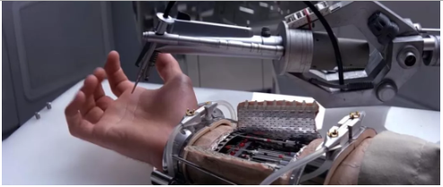 影視作品《星球大戰(zhàn)—帝國反擊戰(zhàn)》中,盧克·天行者斷臂后曾安裝過一款高科技假肢,圖片呈現(xiàn)的是機(jī)器對手臂進(jìn)行意識感知測試,而現(xiàn)在它終于成真了