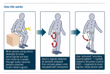 在這部科幻小說(shuō)的啟發(fā)下,美國(guó)和日本在1960年后分別開(kāi)啟了機(jī)械外骨骼的研究。美國(guó)由軍方主導(dǎo)研發(fā),日本則直接從外骨骼的商業(yè)用途入手,關(guān)注幫助殘疾人和老年人進(jìn)行日常生活和生活(散步、爬樓梯、負(fù)載等)。