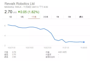 ReWalk公司于2014年9月在納斯達(dá)克上市,上市第一個(gè)月受到了市場(chǎng)追捧,股價(jià)創(chuàng)新高,最高超過(guò)30美元,較發(fā)行價(jià)上漲超過(guò)3倍,動(dòng)態(tài)PS達(dá)到80倍。但由于持續(xù)大額的虧損以及遲遲打不開(kāi)市場(chǎng),之后股價(jià)就開(kāi)始一路下挫。