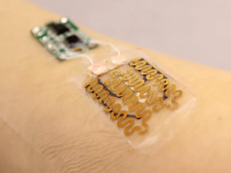 這種智能創(chuàng)口貼除了透明醫(yī)用膠帶、熱活化抗生素凝膠外,還包含了柔性電子元件。