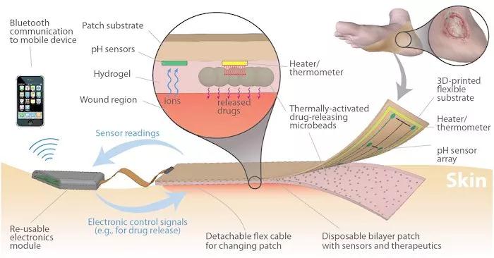 Smart Bandage的智能之處在于它自帶診斷功能,還能嚴(yán)格根據(jù)需要而分配藥物。