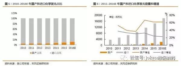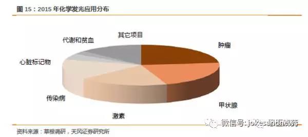 2016年化學發(fā)光市場容量接近200億,國產(chǎn)占比不到20億,但是只考慮總的市場容量是不合理的,因為以目前國產(chǎn)水平難以和進口競爭,所以我們分析市場有效空間。