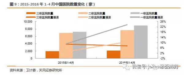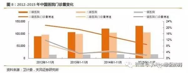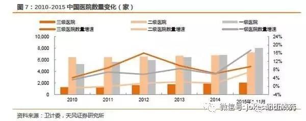 注:2015年醫(yī)院數(shù)量衛(wèi)計委只有1-11月數(shù)據(jù),但不影響整體趨勢和判斷。