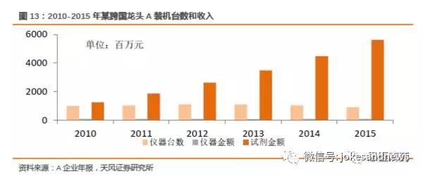 從上圖看出,A企業(yè)的試劑和儀器如果按金額計算,超出10:1,但由于以前裝機的儀器會產(chǎn)生累計疊加效應(yīng),因此不能單純相比,要根據(jù)儀器保有量測算修正。