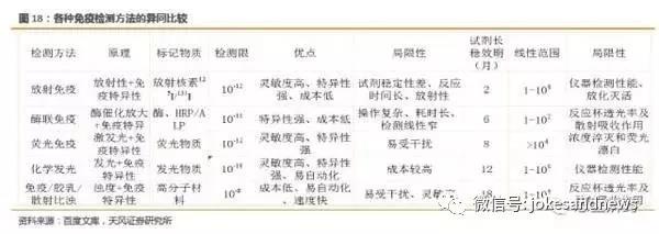 化學發(fā)光大部分項目為三類注冊,由儀器試劑組成封閉系統(tǒng),無開放系統(tǒng),技術(shù)門檻高,準入難,具有先天護城河優(yōu)勢?;瘜W發(fā)光屬于體外診斷子行業(yè)中的免疫分支,臨床免疫廣義包括以抗原抗體結(jié)合為原理的所有產(chǎn)品,包括化學發(fā)光、酶聯(lián)免疫、膠體金、放免、生化中的免疫比濁和膠乳項目、特種蛋白儀等。狹義的臨床免疫通常指化學發(fā)光,該名稱取決于其方法學信號檢測的特點。不同的免疫學方法有不同的應(yīng)用場景和優(yōu)劣勢,具體如下表所示: