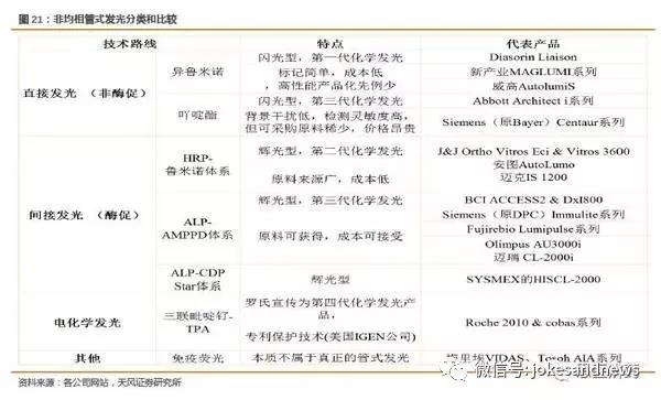 電化學發(fā)光試劑,羅氏宣稱其為第四代化學發(fā)光試劑,在1996年推出,其專利已經(jīng)在2016年過期,國內(nèi)也有企業(yè)已經(jīng)在電化學發(fā)光領(lǐng)域進行了緊密的布局。