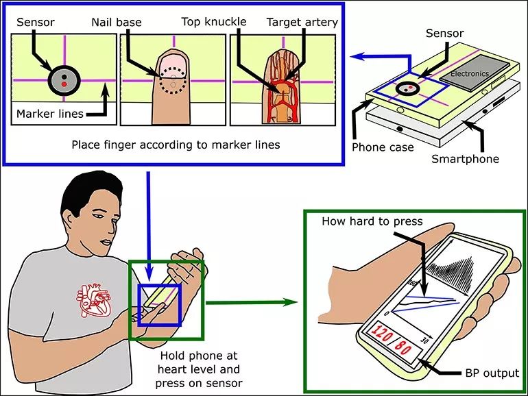 目前這項研究有了新的進展,來自密歇根州立大學和馬里蘭大學的研究人員發(fā)明了一種可以集成到智能手機的血壓傳感器,只需按壓指尖即可完成血壓測量。