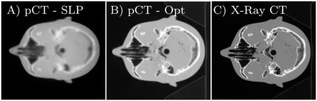 科研人員將質(zhì)子CT圖像與傳統(tǒng)X線CT圖像進(jìn)行了比較。盡管質(zhì)子CT圖像比X線CT圖像模糊,但能夠清晰顯示質(zhì)子與組織之間的相互作用。當(dāng)前質(zhì)子治療過程中,質(zhì)子照射范圍和準(zhǔn)確性都存在不確定性。如果使用X線CT圖像進(jìn)行治療計(jì)劃制定,那么束流實(shí)際到達(dá)和釋放能量的位置會(huì)與計(jì)劃有3-5%的差異,從而損傷正常細(xì)胞;而使用質(zhì)子CT,上述誤差可以降低到1%。