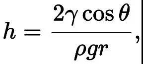把一根細細的玻璃管的一端垂直放進一個水盤子里,水在玻璃管里面就會因毛細作用而上升,上升的高度可以由Jurin定律來計算[4]