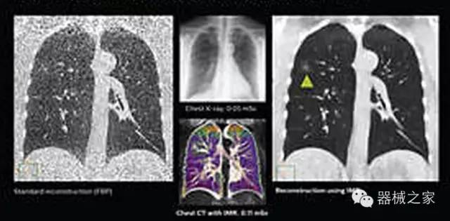 透過數(shù)字化影真芯片DAS系統(tǒng)、球面微平板探測器技術和濾線柵技術等硬件技術,整體提高探測器成像的能力,奠定低劑量條件下高清成像的基礎;