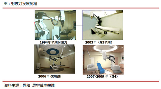 射波刀由斯坦福大學醫(yī)療中心腦外科及放射腫瘤學教授的John R. Adler研發(fā)。2001年,射波刀獲FDA準許治療身體任何部位的腫瘤。射波刀無須使用金屬頭架或體架,它采用計算機立體定位導航和自動跟蹤靶區(qū)技術(shù),是新型的大型立體定向放射治療設備。