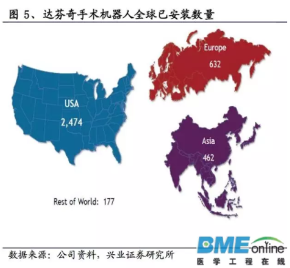 截至2017年6月,全球共有4149臺達芬奇,亞洲的數量占13%