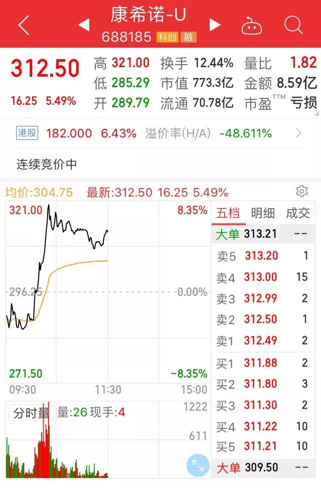 截止午間收盤,康希諾由跌轉(zhuǎn)漲5.49%,報價312.5元。