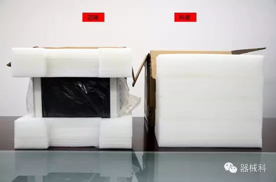 在儀器包裝上,科曼NC12和IPM12都是采用珍珠棉進(jìn)行包裝,但科曼NC12采用360°無死角的全包裹方式,雖然看起來臃腫,但是更能保證儀器在運(yùn)輸途中的安全;邁瑞IPM12采用半包裹的方式,看起來簡(jiǎn)潔清爽,但存在一定的安全隱患。
