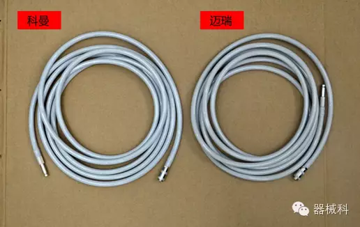兩家都采用目前比較普遍的DB9插頭的轉(zhuǎn)接方式??坡@得沉穩(wěn),線體粗壯,線上還加了磁環(huán),抗干擾能力更強(qiáng)。邁瑞看起來簡(jiǎn)潔新潮,用起來更柔軟,不知道是不是為了不影響美觀才沒有設(shè)計(jì)磁環(huán)呢?